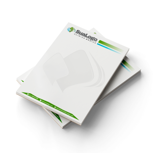 Impressos em alta resolução com jato de tinta, os receituários são produzidos no formato A5 (148x210mm) em papel offset 75g/m², com acabamento blocado por cola na parte superior, o que facilita destacar as folhas com praticidade e sem danificar o papel.